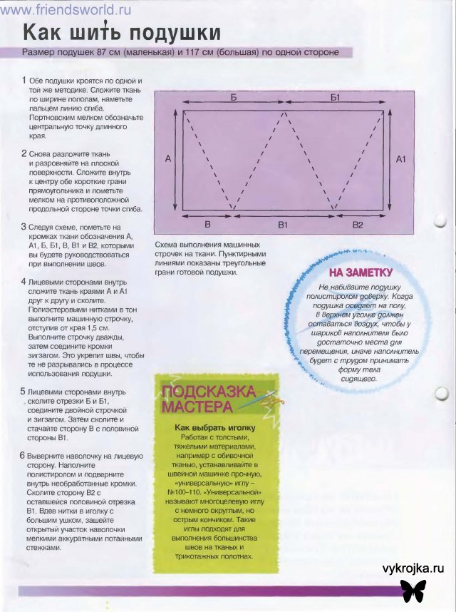 Скачать картинки с описанием пошива подушек: